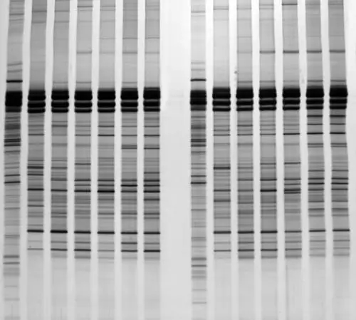 利用PCR-DGGE技术对土壤、环境污泥、水样、动物肠道内容物、酒曲、窖泥等环境中的微生物菌系进行半定量和多样性分析。实验包括:引物设计,基因组DNA电泳图, PCR电泳图, DGGE电泳图,聚类分析图,主成份分析图和多样性分析;DGGE胶图主要条带标注,DGGE胶中特异条带的回收,特异条带PCR扩增,特异条带克隆测序,序列比对分析,种属系统发育分析